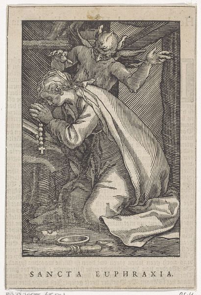 Johann Sadeler I created this engraving of Heilige Albertus in the late 16th century, a period marked by religious reformations and conflicts across Europe. Here, Albertus stands as a figure of scholarly and spiritual devotion. Notice how the light seems to emanate not just from the lamp on the table, but also from above, illuminating him in divine grace. His gaze is intense, yet inward, suggesting a deep contemplation. The lily he holds symbolizes purity, often associated with religious figures. Consider the historical context: In an era of deep religious divides, such a portrait served not just as a depiction but also as a statement of faith. Sadeler’s detailed engraving invites us to reflect on the intertwined nature of faith, intellect, and the personal quest for meaning. It’s a quiet, powerful meditation on the life of devotion.