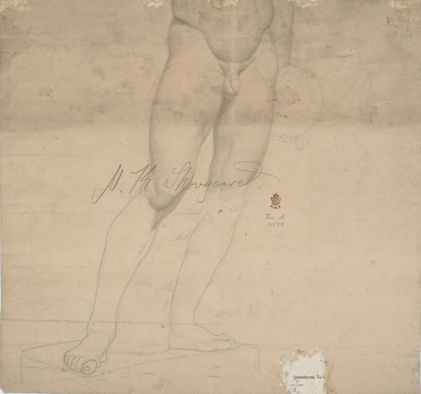 Editor: Here we have “Legs of Boy Wearing Knickers,” a pencil drawing on paper by John Downman, date unknown, in the collection of the Art Institute of Chicago. It's a strangely compelling fragment, isn't it? Just the legs, so precisely rendered. I'm curious, what stands out to you about this particular drawing? Curator: Oh, I'm immediately drawn to the *intimacy* of it. It's more than just anatomical study; it feels like a tender observation, a quiet moment stolen. Imagine Downman, eyes intensely focused, meticulously tracing the subtle curves and swells of youthful flesh...It's less about perfect representation and more about capturing a fleeting essence, wouldn't you agree? Do you notice how the fabric gathers just so around the knee, held by a casually tied ribbon? A ribbon, for goodness sake! A subtle sign of the boy’s aristocratic origins. Editor: Definitely. The folds in the knickers and the way he’s captured the light...it feels very delicate. But is there any symbolism you find compelling? It feels too mundane, perhaps, to carry much hidden meaning? Curator: Well, perhaps not overtly symbolic, but isn't life often in the overlooked mundane? It's a peek into a specific time and place; breeches tied just below the knee like that, were giving way to longer trousers around the time of the French Revolution. Here, this is a boy poised on the edge of immense change, personal and historical. Who was this boy? What were his hopes, his fears? These questions haunt me when I look at this drawing, just this evocative, careful rendering. A tantalising enigma! Editor: That's a fascinating point. I hadn't considered the social context implied by the clothing. Curator: See? Never underestimate the legs, my friend! Sometimes the most eloquent stories are told in the smallest details. They are there, we must just pay attention! Editor: It definitely adds a new dimension to how I view the piece. I appreciate your insights!