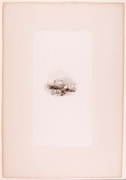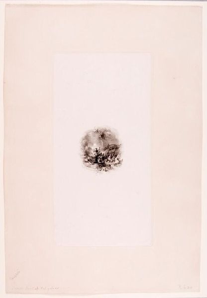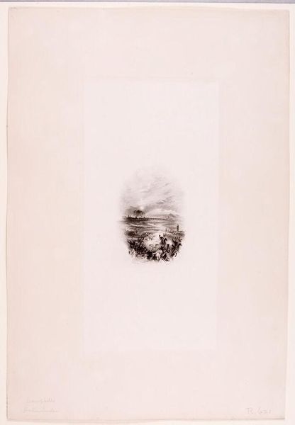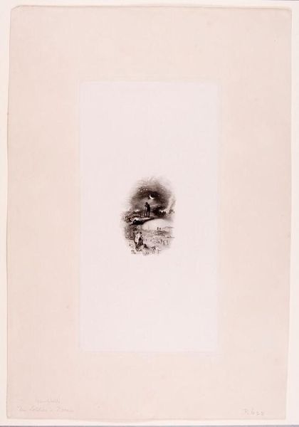 Curator: The subject of our focus is Edward Goodall's "The Last Man," currently residing in the Harvard Art Museums. Editor: My initial impression is of intense solitude. The stark white space surrounding the central image creates a feeling of immense emptiness. Curator: Yes, the figure seems quite isolated. The subject of the last man on earth resonates with potent cultural anxieties, exploring themes of survival and the end of civilization. Editor: It's striking how the artist chose to depict the scene. The monochromatic palette and hazy details emphasize the bleakness. What materials did Goodall employ to create this effect? Curator: I think the key here lies in how this composition speaks to universal fears and hopes, reflecting the resilience of the human spirit even when faced with extinction. Editor: True, and the choice of humble materials serves to amplify the feeling of loss, reminding us that even the grandest narratives ultimately depend on simple resources and labor. Curator: It's a poignant reminder of our place in the world. Editor: Indeed, a bleak outlook, but valuable insight into our relationship with our world, and our own mortality.