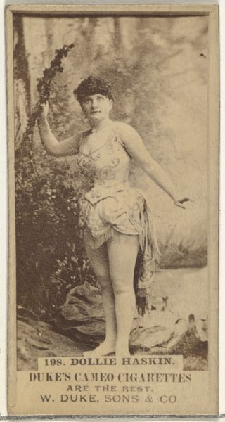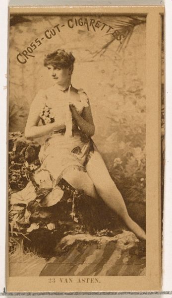 This is a photographic print of Miss Broughton, from the Actresses series, that was issued by the Wm. S. Kimball & Co. These cards were distributed with cigarettes at a time when the emergent consumer culture in the United States was busy incorporating women into its promotional strategies. Here, Miss Broughton’s body is presented as an object of spectacle, her idealized form framed by an exotic backdrop. The card is a product of its time, reflecting the gender dynamics of late 19th-century America, when the burgeoning advertising industry was just starting to realize the selling power of female imagery. As a historian, I am interested in how such images contribute to the cultural construction of femininity. Resources such as advertising archives, sociological studies, and historical analyses of consumer culture can provide valuable insights into the social context and impact of this seemingly simple cigarette card.