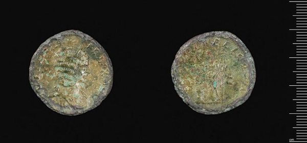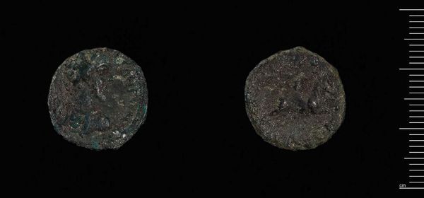 Curator: This is an Antoninianus, a coin of the Roman Emperor Gallienus. It’s part of the Harvard Art Museums collection. Editor: Wow, it looks ancient! Weathered and worn, like it carries the weight of centuries. Curator: Precisely! Coins like this weren't just currency, they were propaganda, circulating the emperor's image and projecting power throughout the empire. Editor: It’s incredible to think of this tiny metal object influencing so many lives, reflecting political agendas and perhaps even the daily anxieties of ordinary people. I wonder what hands it passed through. Curator: Indeed, it's a tangible connection to a distant past, offering insights into Roman governance and imperial ambitions. Editor: A little piece of history, right here. It makes you feel like you can reach out and touch another lifetime.