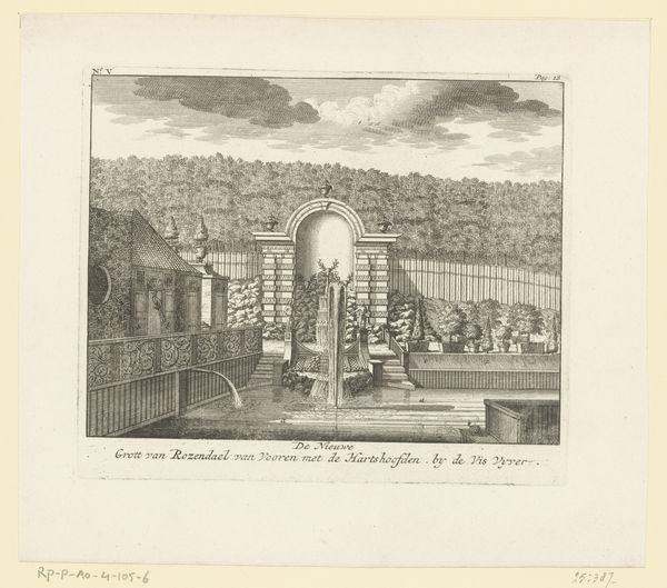 Daniël Stopendaal's etching presents us with a view of the Clingendael estate, dominated by the serene pond and the figure of Apollo. The statue of Apollo is a potent symbol, representing light, reason, and the arts, all central to the Enlightenment ideals of the time. But let us consider the labyrinthine hedges framing the vista. These manicured walls, present also in ancient Roman gardens and recurring throughout Renaissance and Baroque landscapes, evoke a sense of structured control over nature. Yet, they also hint at the potential for disorientation and the subconscious desire to lose oneself within a constructed reality. This tension between order and chaos resonates deeply. Think of the Minotaur's labyrinth, or even contemporary hedge mazes. The motif taps into our collective memory, reminding us of humanity’s ongoing attempt to dominate nature while simultaneously acknowledging its untamable depths. It is this very dance that engages us on a profound psychological level. Like a dreamscape, this image offers the promise of revelation if we follow its winding paths.
