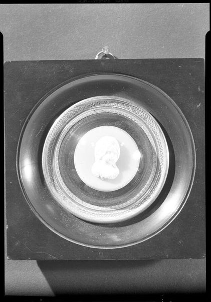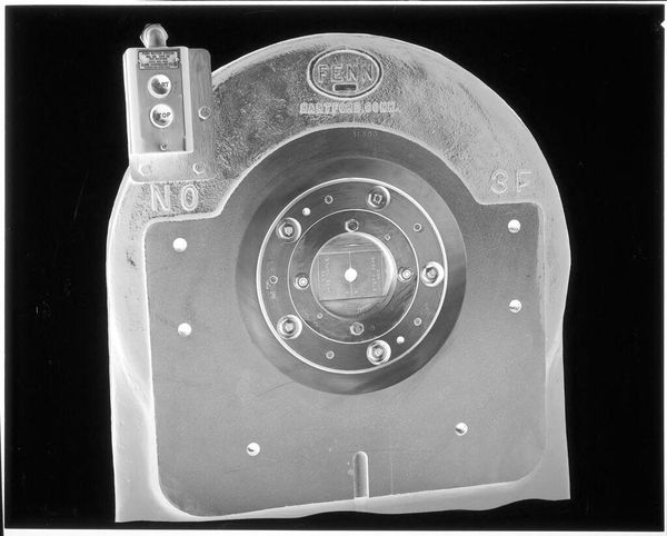 Curator: Jack Gould's photograph, "Untitled (view of machinery inside large pipe)," presents an intriguing, almost claustrophobic view. It’s a small gelatin silver print, only about 5.7 centimeters square. Editor: My first impression is that it feels strangely futuristic, like looking into the engine of some forgotten spacecraft. Cold and mechanical. Curator: The photograph invites us to consider the symbolic weight of industry in the modern age. The interior of a pipe becomes a kind of technological womb. Editor: I wonder about the social context. Was this taken during a period of great industrial growth? How was Gould influenced by the societal worship of machinery? Curator: Regardless of its specific origins, the image resonates with a sense of hidden power, a technological sublime made accessible through Gould's lens. Editor: Indeed. It speaks to the beauty, even the terror, of the unseen forces shaping our world. A powerful, intimate glimpse.