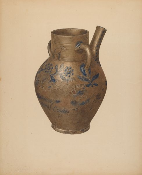 This is a drawing of a basket made by Michael Trekur, but we don't know exactly when. It's rendered with a delicate touch, a web of fine lines that suggest the woven texture of the original object. The palette is restrained, almost monochromatic, focusing attention on the intricate patterns. It’s a great example of how an image can capture the essence of a thing, while also being its own thing. Looking at the surface, you can almost feel the texture of the basket, even though it's just lines on paper. The geometric motifs—zigzags, diamonds, and those stepped lines—create a visual rhythm that’s both pleasing and intriguing. It's interesting how Trekur uses these simple shapes to create such a complex and visually engaging form. I am drawn to the level of detail he captures. This drawing reminds me of the work of Agnes Martin, who also used simple lines and grids to create a sense of calm and order. Both artists seem to understand that art is not just about what you see, but about how you see it. And this drawing invites us to see the beauty in the everyday, the extraordinary in the ordinary.