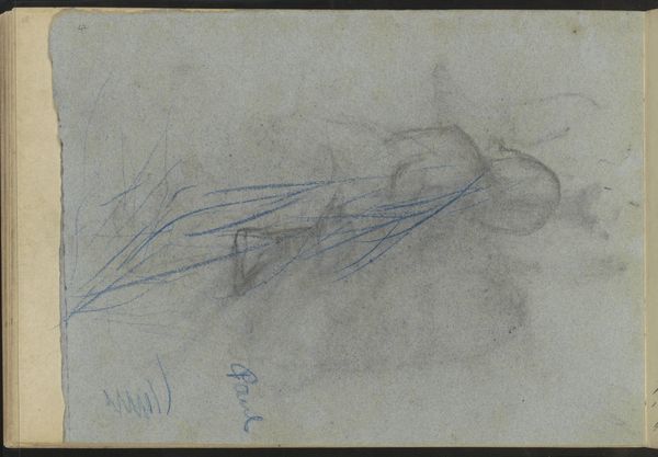 Editor: This is "Man en vrouw, tegen elkaar leunend" by Matthijs Maris. It's a pencil drawing from sometime between 1849 and 1917, housed at the Rijksmuseum. At first glance, it feels like a fleeting impression, like a memory fading at the edges. What do you see in it? Curator: Fading, yes! Maris was notoriously reclusive. Imagine him, sequestered, endlessly reworking impressions. See how the lines barely coalesce? The drawing, like the relationship it suggests, is hesitant, unfinished. Almost as if the paper itself is trying to forget what’s sketched upon it. Does the work evoke longing? Editor: Absolutely, but maybe also intimacy? They're leaning on each other, after all. Or am I projecting a narrative onto a jumble of lines? Curator: Project away! Maris himself cultivated mystery. Look closely – is it tenderness or merely shared weariness that binds them? There’s no definition, only suggestion. He gives you just enough to whisper a story, but not enough to shout one. Editor: So the incompleteness is intentional, a way of inviting us to participate in the creation? Curator: Precisely! He hands you a thread and dares you to weave it into something meaningful. He invites you into his personal world. Can you see it, too? What feelings arise when you view it? Editor: I do now! Initially, I thought it was just a sketch, but it's really an invitation. Thank you for untangling those lines for me! Curator: My pleasure! Isn't it fascinating how a few, faint lines can hold so much feeling, so much… humanity?