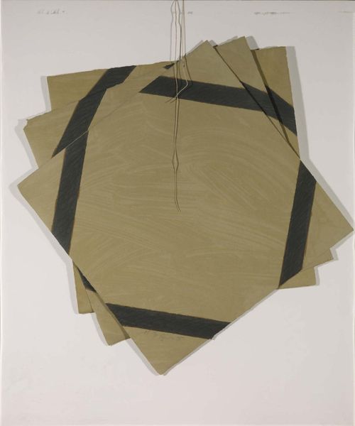 Editor: This is Richard Smith's *Russian II*. It's undated, but the Tate tells us it's made from paper and canvas. It looks like a deconstructed painting, almost like layers of raw material. What's your take on this piece? Curator: The materiality is key here. Smith draws our attention to the physical processes of art making. How do the paper and canvas relate, not just as support and image, but as commodities, objects of consumption in themselves? Editor: So, you're saying it's less about what it represents and more about what it *is* made of? Curator: Precisely. It challenges the traditional hierarchy of painting, forcing us to confront the labor and materials that constitute it. What do you think about the string? Editor: It makes me think about construction and deconstruction, and how it implicates us. Curator: Exactly! It certainly gives one something to reflect on.