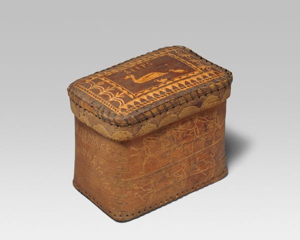 Editor: This delicate box, known simply as "Doos", dates back to somewhere between 1800 and 1850. It’s crafted from brass, gold, and enamel, showcasing these beautiful landscape miniatures. It really makes me think of Baroque extravagance on a miniature scale. What catches your eye about it? Curator: The box intrigues me because it speaks volumes about the social and cultural context of its time. Notice the ornate gold work and the meticulous landscape scenes. How might these features have reflected the status of the person who owned it? Editor: I imagine owning something so elaborate definitely signaled wealth. Was the subject matter of these landscapes particularly fashionable then? Curator: Absolutely. Landscape imagery, especially idealized views of nature and architecture, was popular amongst the elite. The images projected wealth, cultivation, and control over one's environment – a carefully curated vision, much like the art collections of the period. Do you think the choice of enamel connects it to a specific craft tradition or geographical location? Editor: Maybe Limoges enamel? Given the time period? It would explain the finesse! And how the gold and the enamel work together. What's your impression? Curator: I find it fascinating to consider the layers of meaning embedded within this small object. It is much more than a pretty little thing! Think about the artisan's skill, the patron's taste, and how decorative art reinforced social hierarchies and power structures. Editor: So it’s like a miniature time capsule reflecting an entire social landscape! It really shifts how I perceive it – I see not just artistry but also an embodiment of its historical moment. Curator: Exactly! By paying attention to social context, we uncover richer narratives in seemingly simple artworks.