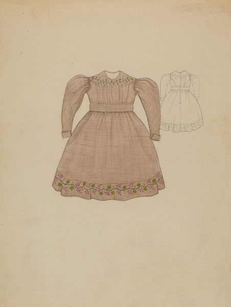 Lucien Verbeke made this study of a ‘Child's Dress’, and it’s all about process. You can see how the watercolor paint interacts with the paper, soaking in and bleeding softly at the edges of each stroke. The whole image is built from these vertical lines, like a drawing that wants to be a painting but doesn’t quite know how. I love how the red and white stripes give the dress volume and shape, suggesting its folds and curves without ever feeling too precise. The thin, watery paint feels delicate, almost ephemeral, as if the dress might disappear if you look at it too closely. The gold trim adds a touch of formality, but the overall effect is light and airy, like a half-remembered dream. This piece reminds me a little of Agnes Martin’s subtle grids – a quiet exploration of color, line, and the joy of simple, repetitive gestures. It embraces its ambiguities, letting the image emerge slowly from the marks on the page.