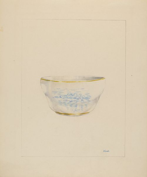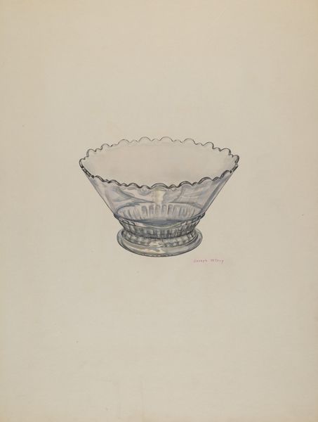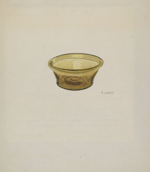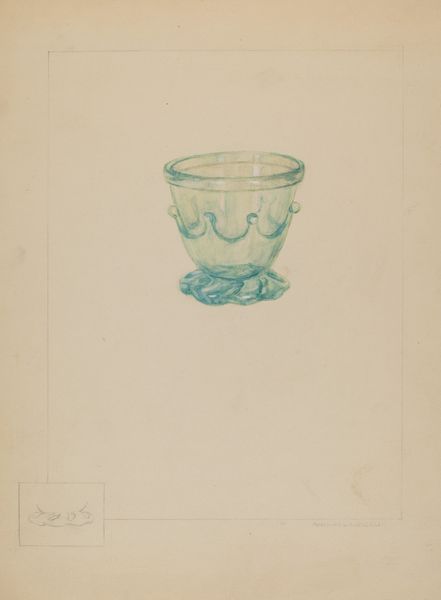 Curator: Welcome! Before us, we have Roberta Elvis’s drawing titled “Bowl,” created around 1936. It is a pencil drawing, showcasing both the object and some of its potential design elements. Editor: I’m immediately struck by its ghostly quality, that pale, almost ethereal rendering. It feels like a memory of a bowl, rather than the bowl itself. It looks as though light shimmers and passes through it, and reminds me of the delicate glass artifacts that we keep in memory cases. Curator: Absolutely. The very medium used—pencil—lends itself to that fleeting impression. It brings to mind traditional craft, design sketches for decorative glasswork with all the layered symbols embedded in it, hinting to an archaic, Hellenic narrative with the laurel details. Editor: It makes me think about who would have used such a bowl, especially considering the period. A design like this speaks to ideas of refinement, even luxury, which was likely complicated, considering the economic realities of the mid-1930s in the wake of the Great Depression. Perhaps the figures relate to power structures from antiquity that continue to hold weight even today. Curator: Quite possibly. And consider that those enclosed figures become almost talismanic. By surrounding everyday objects, they create a protective psychic barrier. They act as symbolic gatekeepers to another cultural stratum, preserving that aesthetic integrity for those privileged enough to perceive it. Editor: I also can't help but wonder about the artist’s process, using preliminary sketches that are separate from the main figure, in order to create a feeling that is almost diagrammatic in nature. It’s intriguing, like seeing the bowl’s DNA being mapped out, as Elvis offers possible alterations and adjustments. Almost like blueprints for privilege itself. Curator: Interesting perspective. It does suggest an evolution of an idea, almost like layers of meaning gradually revealed. Each encircled figure on the sheet is carefully rendered, holding its unique identity, until all finally materialize in one vision on this beautifully ornamented artifact. Editor: For me, it highlights the ways even simple objects can hold complex histories and social values. It is an almost mundane design of something, imbued with a quiet resistance. Curator: For me, this unassuming artwork carries layered histories and resonates as an artifact to behold in light of our culture. Editor: Absolutely, it is more than meets the eye!