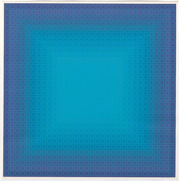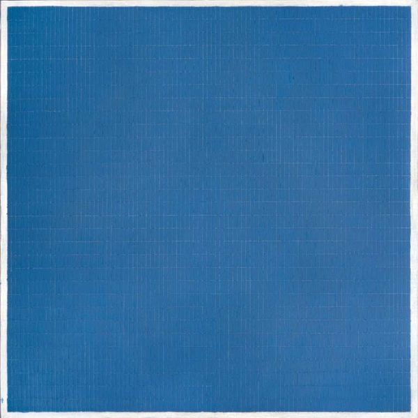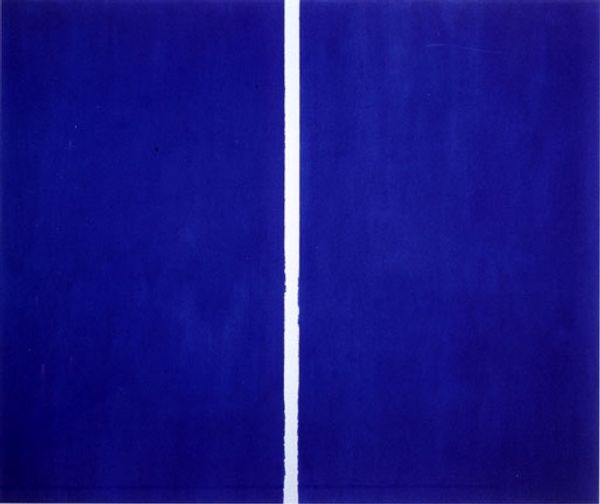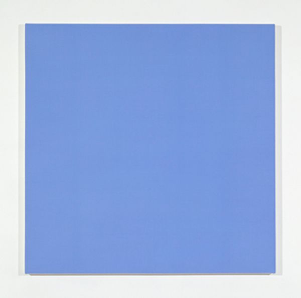Editor: This is Rudolf de Crignis’ "Painting No. 97—23 (Ultramarine Blue, Zinc White, Ruby Lake)," created in 1997. It’s strikingly simple: a monochrome, vibrant blue square. It reminds me of Yves Klein, but much cooler in tone. What historical narratives can we draw from its minimalism? Curator: Its simplicity invites us to consider the broader context of minimalist art and its reception. In the late 20th century, what did such stark reduction signify amidst increasingly complex socio-political landscapes? Editor: That’s interesting. I wouldn’t have thought about it in that light. It seems so… purely aesthetic, disconnected from social issues. Curator: Is it disconnected, though? Think about the role of institutions in validating such work. Galleries, collectors, even the art market itself - how do they shape our understanding and assign value to a seemingly simple object like this blue square? What kind of statement is Crignis making? Editor: Perhaps it's a commentary on the art world itself, the way value is assigned, or even a deliberate provocation to engage with colour in a specific cultural context? It's much more complex than it looks, it seems! Curator: Exactly! And that perceived 'purity' could be a deliberate illusion. What political or social statements can the display and appreciation of minimalist works in elite spaces suggest? Are they aesthetic statements, or socio-political ones too? Editor: I had not even thought about the value ascribed and validation via institutions playing a socio-political role. Thanks; that gives me a totally fresh perspective. Curator: My pleasure! Now consider: who decides what deserves that validation?