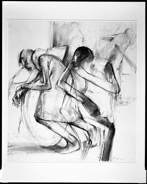 Editor: Here we have August Macke's "Three Female Nudes" from the Harvard Art Museums. It's rendered in bold, stark ink. The figures are not particularly naturalistic. How do you see this work fitting into the art of its time? Curator: Well, Macke was part of the German Expressionist movement, a period grappling with rapid industrialization and shifting societal norms. How do you think these anxieties might be reflected in his representation of the female nude? Editor: It's interesting that you mention societal norms, it feels like he's subverting traditional expectations for idealized female figures. Curator: Precisely. Macke, like many Expressionists, was interested in challenging bourgeois values. The raw, almost unfinished quality of the ink drawing further emphasizes this rejection of academic polish. What do you make of the poses? Do they convey anything beyond mere representation? Editor: I think the figures' posture does convey a sense of vulnerability. Curator: Exactly, and in doing so, perhaps critiques the objectification inherent in earlier depictions of nudes. It really encourages one to consider the politics of the gaze. Editor: I never thought about it that way, I guess there is a lot more going on in this sketch than I initially assumed. Curator: It is fascinating how art can reflect and challenge the values of its time.