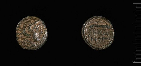 Curator: Imagine holding a piece of ancient Macedonia in your hand. This is a coin of Philip V, currently residing at the Harvard Art Museums. Editor: It feels like a whisper from the past, doesn't it? Diminutive, yet it projects such a weighty aura. Curator: Coins are cultural carriers. Note how Philip V uses imagery to convey power and lineage: the king's portrait embodies authority, echoing symbolism found throughout Hellenistic art. Editor: The way the metal's worn, the faint glimmer of what was once bright—it’s like a fading memory, a dream almost, hinting at grand ambition humbled by time. I see Zeus too? Curator: Indeed. Zeus appears on the reverse, flanked by inscriptions, further solidifying the divine right to rule and the cultural context. Editor: Incredible how something so small can speak so loudly of dynasties, gods, and the enduring human desire for legacy. A pocket-sized epic. Curator: It underscores how artifacts help us construct the narrative of civilization itself. Editor: This coin offers such a tangible connection. I find it truly compelling.