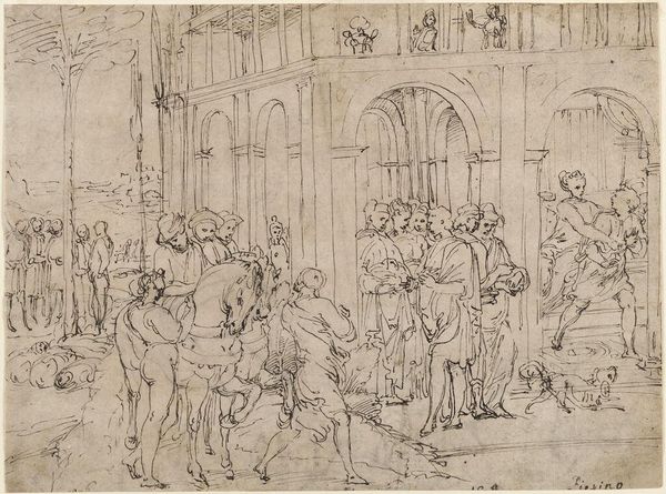 Pauwels Franck, also known as Paolo Fiammingo, made this drawing called, *Venus Visiting the Forge of Vulcan*, in the late 16th century. It depicts the classical scene of Venus, goddess of love, visiting the workshop of her husband Vulcan, the god of fire and metalworking. The image offers a glimpse into the artistic and social context of the time. The detailed depiction of the forge, with its industrious workers, classical architecture, and mythological scene, reflects the cultural values of Renaissance Europe. It revives interest in classical antiquity, a fascination with craftsmanship, and an admiration for mythological narratives. This drawing made in Europe, would have served as a commentary on the social structures of its time, reinforcing existing norms. Historians consult inventories of collections, artist biographies, and institutional records to better understand the social and institutional context in which art is made. These contextual elements are essential for understanding the meanings and values that works of art embody.