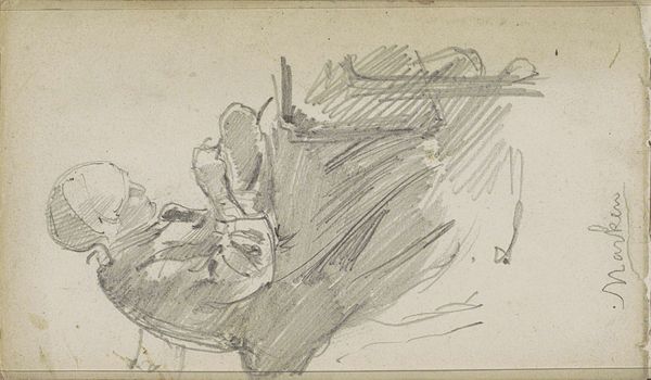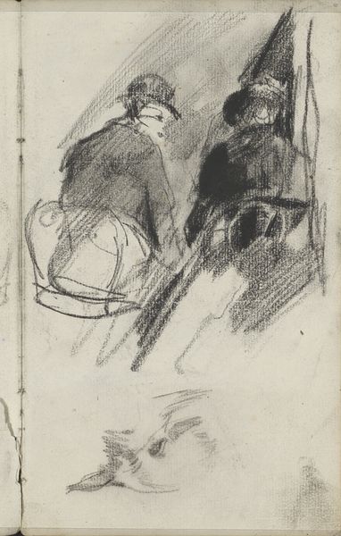Editor: Here we have James Abbott McNeill Whistler's "The Duet, No. 2," currently housed at the Harvard Art Museums. It's difficult to get a sense of depth, it's almost flattened. How do you interpret the composition? Curator: Observe how Whistler employs a limited tonal range and delicate lines. The composition is less about representing a scene and more about exploring the relationship between form and space. Notice the subtle balance between positive and negative space. Editor: So, it's less about who these figures are and more about how they fill the space? Curator: Precisely. Consider the way Whistler uses line to suggest form, rather than define it explicitly. The emphasis is on the aesthetic experience, the arrangement of visual elements, and their intrinsic qualities. Editor: I hadn't considered it that way before. Thanks for pointing that out! Curator: My pleasure. Paying attention to form opens new ways of appreciating a work.