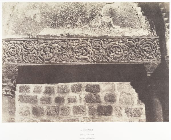This photograph captures a bas-relief at the entrance to the Saint-Sépulcre in Jerusalem, taken by Auguste Salzmann in the mid-19th century. The image focuses on the stone carving above the doorway. Notice the texture, the way the light plays across the surface, revealing the skill involved in shaping the stone. The photograph itself is an albumen print, a process involving coating paper with egg white and silver nitrate, then exposing it to light through a negative. Consider the labor, the skill, the time, and the traditions involved. Stone carving, an ancient craft, transformed into a reproducible image through photography. It is no longer a unique object but an image that can be disseminated widely. Salzmann’s work sits at this interesting intersection between craft and reproducibility. By understanding the materials, the making, and the context, we gain a deeper appreciation for both the artistry and the historical significance of this artwork.