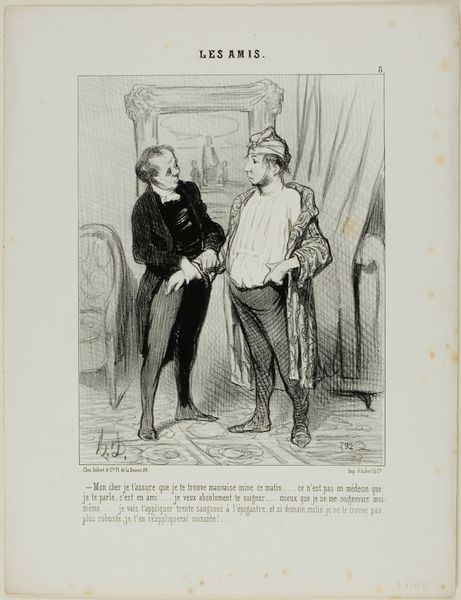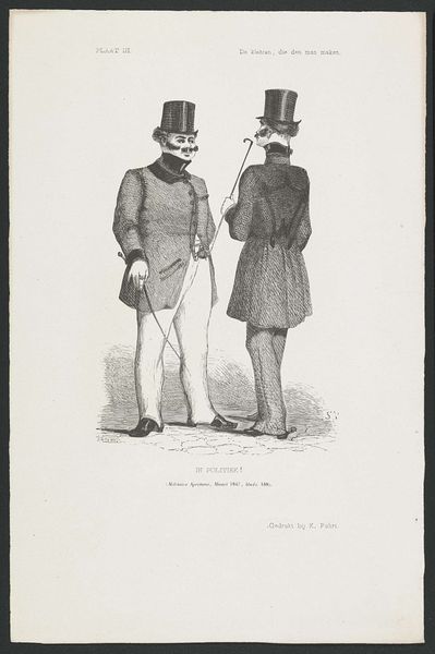 This print, made by Rombertus Julianus van Arum, captures a fraught moment between father and son, focusing on the son's Parisian moustache. The moustache here becomes a symbol of foreign influence. Consider its journey through time: from ancient depictions of strength and virility, like the Assyrian kings with their elaborately styled beards, to its modern interpretation as a marker of cultural identity. The moustache, once a symbol of power, is now a symbol of rebellion against the old guard. This visual rebellion is not merely about aesthetics; it touches on generational divides and cultural anxieties. It is a projection of internal conflicts onto an external image, resonating deeply with viewers even today. The moustache is a potent visual motif, laden with cultural and emotional significance, ever-evolving and reappearing throughout history.