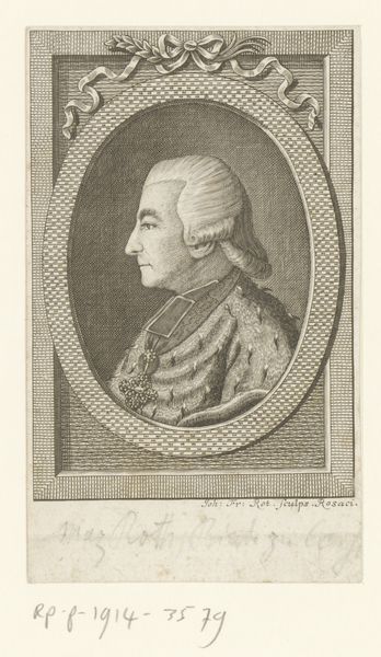 Curator: Augustin de Saint-Aubin created this engraving, titled *Portret van Petrus Johannes Simon van Eupen*, in 1790. It's part of the Rijksmuseum collection. Editor: It has a strangely ethereal quality. Despite the formality inherent in the portrait style and neoclassical frame, the sitter looks remarkably vulnerable. Curator: Absolutely. The oval frame—a motif echoing Roman portraiture—and the stone plinth certainly root it in Neoclassical tradition, invoking themes of civic virtue and reason. But observe how the symbols resonate beyond simple visual cues, evoking cultural memory and the enduring legacy of classical ideals. The subject gazes out in a way that appears, perhaps, searching, not regal. Editor: The “Charitas Articulat” inscribed on the plinth reads as both an assertion and a subtle commentary, especially given the complex social context of the late 18th century, a time fraught with pre-revolutionary tensions and anxieties regarding power and charity. One might examine how this choice frames ideas around social responsibility. It’s also hard not to read that text and elaborate frame as defenses—almost desperate assertions of legitimacy and status in an era that increasingly questioned it. Curator: Yes, the text and other visual clues become more significant in that respect. In the symbol itself, look closely, for example, at the armorial crest with what appears to be scales, hinting at a profession in law or justice. It’s also noteworthy that engraving was a medium often employed to disseminate images of the powerful. The visual language creates a lasting impression through symbolic layers. Editor: This makes me think about who had access to these images, and how class and identity factor in when trying to interpret the messages it was meant to send. If we consider that many were increasingly excluded from political or cultural spheres, this form of imagery had limited effect. This piece is very much situated within discussions on the limits of philanthropy, when considering inequality. Curator: Exactly. The artist used symbols of legacy, law, and, perhaps, social benevolence, as though crafting a narrative for both immediate consumption and posterity. Symbols as both affirmation and questions... fascinating. Editor: A tension that helps reveal broader patterns within the anxieties of the period, through the story of this person. Thank you.