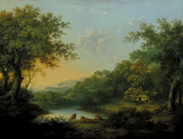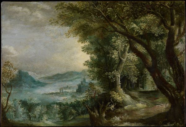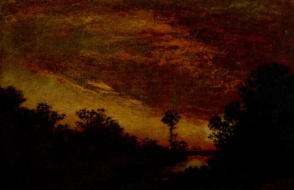 Ralph Blakelock made this landscape painting on canvas, but the date is unknown. While appearing traditional, Blakelock's artistic process was unconventional. He didn't rely on preliminary sketches or direct observation, but built up layers of pigment, incorporating materials like varnish, glazes, and even dirt or sand to achieve the effect of depth and texture. The thick application and manipulation of paint is evident. He scratched and scraped the surface to create a sense of flickering light and movement within the dense foliage. This working of the material surface wasn't just about representation, but about the physical engagement with the medium itself. Blakelock was from a relatively privileged background, and his method can be interpreted as a rebellion against academic norms, elevating process and material experimentation over traditional techniques. This hands-on approach blurs the lines between painting and sculpture, inviting us to consider the physicality of the work and the artist's labor in its creation.