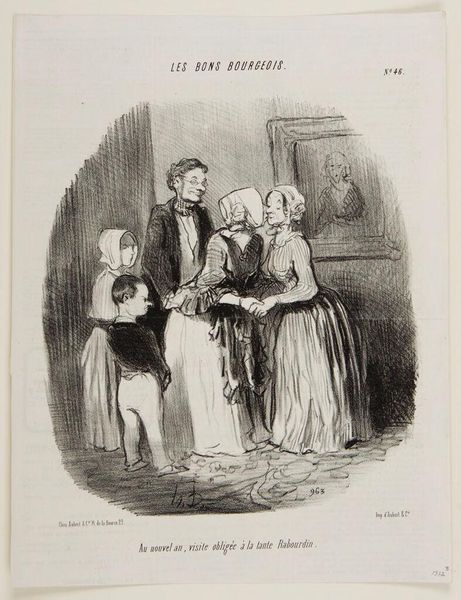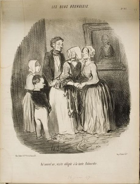 Honoré Daumier made this lithograph of a family visit sometime in the 19th century. Daumier was renowned for using lithography, a printmaking technique that relies on the chemical repulsion between oil and water. He drew directly onto a stone with a greasy crayon, then treated the stone with chemicals. The image is transferred to paper through a printing press. The beauty of lithography is its directness. Daumier's marks are incredibly gestural. The resulting print retains a sense of the artist's hand, a quality that aligns it more closely with drawing than with industrial production. This directness is evident in the figures' expressions and postures. Yet, lithography was also a commercial medium, ideal for mass production and distribution. Daumier used it to create satirical commentaries on French society for newspapers and journals. In his hands, lithography becomes a powerful tool for social observation, blurring the lines between art, craft, and social commentary. It invites us to consider the social context in which art is made and consumed.