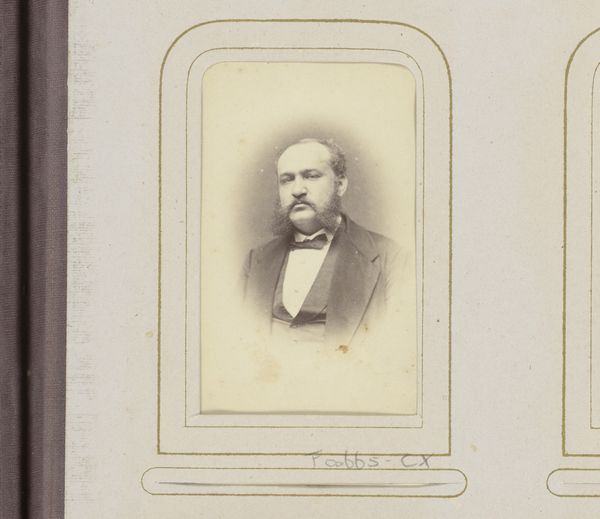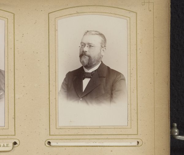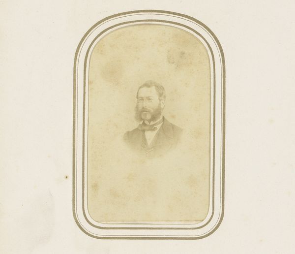 Curator: Looking at this sepia photograph, I get a feeling of a sort of gentle introspection. What about you? Editor: Yeah, he's definitely lost in thought, isn't he? I see a solid citizen of his time. This image by Ghémar Frères, housed here at the Rijksmuseum, is simply titled 'Portret van een man met snor en baard', or 'Portrait of a man with mustache and beard,' created sometime between 1860 and 1894. Curator: It is striking how, during that era, portraiture solidified the bourgeois identity—linking personal gravitas with societal role. This photograph subtly communicates volumes about class and masculinity. His direct gaze suggests a negotiation with the emergent middle-class ideal. How much control did the subject really have over that projection though? Editor: That's true, but what strikes me most are the little imperfections on the photograph. It almost makes me feel like I'm holding a small piece of the past, something tangible. The light seems to emanate from within the image, softening all the details. He seems dignified, but there's a certain… weariness there. Curator: Yes, that weariness speaks to something important. Photography wasn't just about surface appearance. The image would convey a controlled representation aligned with 19th-century values while, at the same time, we read this slight hint of his personal experience, perhaps some melancholy or even dissent within the constraints of photographic and societal expectations. Editor: It also makes me think about the stories this photo could tell, or perhaps more accurately, the stories that are forever lost. This was likely someone's valued keepsake. It feels intimate even with the sitter consciously posing. What does it mean that this is just floating around for anyone to consider now? Curator: It's that very question of intimacy and representation which fascinates me. It reminds us of how portraits have always functioned as careful performances of self, mediating public expectation with individual identity, something that obviously remains deeply relevant today, though the means of doing so have drastically shifted with our current social media ecosystem. Editor: I like that. It encourages us to think beyond the image itself, beyond just aesthetics or the person represented and recognize this image as an artifact of a particular cultural moment. Curator: Exactly. I’m finding it particularly haunting now.