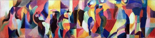 Robert Delaunay made this diptych, Rhythm, with oil paint applied in a manner that feels intuitive and almost meditative. The materiality of the painting is quite striking. The paint isn't overly thick, but there's a definite texture, a sort of gentle, rolling topography created by the many layers. The colors, oh, the colors! They’re vivid, primary, and applied in concentric circles that suggest movement and depth. I'm drawn to the way Delaunay uses contrasting colors to create a sense of vibration. Look at the right panel. The interplay between the blues, reds, and yellows creates a visual push and pull, a dynamic energy that keeps the eye dancing across the surface. Delaunay’s work, with its embrace of pure color and abstract form, feels like a precursor to the color field paintings of the mid-20th century. It's as if he's set the stage for artists like Kenneth Noland, who would later explore the expressive potential of color in even more radical ways. In the end, art is all about conversations across time.