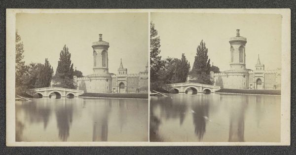 Editor: This albumen print, "Vijver met op de achtergrond Kasteel Rosendael," by Geldolph Adriaan Kessler, made in 1904, gives a muted, almost dreamlike impression of the castle reflected in the pond. I’m fascinated by the albumen print process itself. What can you tell me about how this piece operates within its material context? Curator: Kessler's choice of the albumen print is key. Think about the intense labor involved: preparing the glass plate, coating it with albumen—egg whites, whipped to a froth!—sensitizing it, exposing the image, all before it degrades. And for what? To reproduce a stately image, subtly reinforcing notions of wealth and leisure. The very means of production point to social hierarchies. Editor: So, the image and the process are intertwined in commenting on social structure? Curator: Precisely. Photography, particularly through processes like albumen printing, was becoming more accessible, but still required resources and skill. Consider who could afford such a leisure pursuit, and who was engaged in the labor of producing these images. Is this a depiction of "cityscape", or of material status achieved by its elite? Editor: I hadn't considered the economic factors tied to photographic processes back then. It makes you think about the choices artists made, knowing the impact. Curator: Kessler is not just making a pretty picture; he is participating in the larger material culture of his time. Think about how many prints might have been made and circulated, contributing to the collective consciousness. We could almost reconstruct society by examining the surviving material record. Editor: Seeing it through that lens makes me reconsider what photography meant back then. I focused too much on its aesthetics at face value, rather than considering it within a production/consumption system. Curator: Indeed, recognizing the interwoven nature of art, labor, and societal forces is essential to truly grasping its cultural relevance.