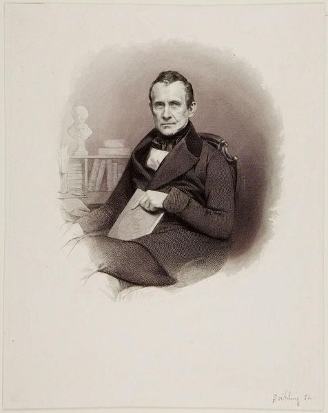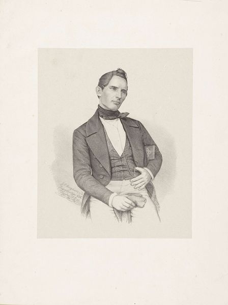 Curator: This is Lazarus Gottlieb Sichling's lithograph of Francis Calley Gray, currently held in the Harvard Art Museums collection. Editor: The sitter looks rather stern. I wonder what the context was around this portrait's commission and production. Curator: Lithography allowed for relatively quick and affordable reproduction, expanding access to portraiture. It's interesting to think about how the means of production shaped its distribution and consumption. Editor: Exactly. Portraits like this served to solidify social standing and project an image of respectability. It reflects the values of the emerging middle class. Curator: And the textures achieved through the lithographic process—the subtle gradations and delicate lines—demonstrate the skill involved in this printmaking technique. Editor: I agree, it's a fascinating example of how art intersects with both social history and material practice. Curator: Indeed, thinking about its production makes us look differently at its cultural place. Editor: Yes, and it enriches our understanding of the political economy of art in this period.