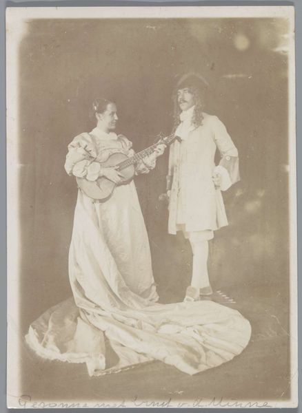 This small photographic print of actors Georgie Drew and Sadie Kirby was made as an advertising card for Old Judge Cigarettes, sometime in the late 19th century. Produced on a miniature scale with industrial methods, its original purpose was not high art, but mass consumption. Printed on thin paper stock, the sepia-toned image is a reminder that photography itself became a mass-producible medium during this period. Consider the labor that went into making these cards; from the factory workers operating printing presses, to the tobacco pickers, to the actresses and studio staff required to pose for the photograph in the first place. The image presents the actresses in costume. Note the texture and form of their garments, translated into monochrome by the printing process. What was once colorful and vibrant on stage, now becomes a study in light and shadow, texture and pattern. This card reminds us that images, like all objects, have a material reality, and exist within complex social and economic systems.