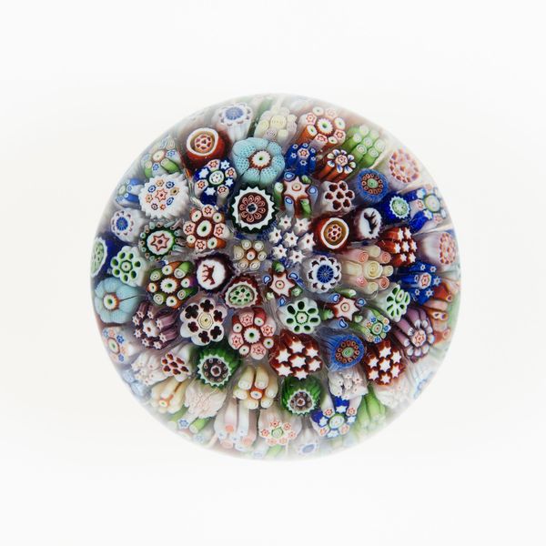 This glass paperweight was made in France by the Clichy Glasshouse sometime between 1837 and 1885. Its concentric arrangement of millefiori, or "thousand flowers," speaks to the 19th-century fascination with controlled, geometric beauty. Paperweights like these became fashionable desk accessories during a time of increased literacy and office work. The Clichy Glasshouse, renowned for its craftsmanship, was one of several companies catering to the bourgeois desire for luxury goods. The intricate floral patterns, frozen in glass, reflect a culture that valued order and the preservation of natural beauty in an increasingly industrialized world. To truly understand objects like this, one must turn to sources beyond the purely aesthetic: trade records, social histories of consumerism, and studies of the glassmaking industry. Only then can we fully appreciate this paperweight as a symbol of its time.