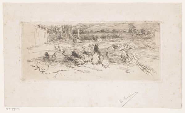Max Liebermann created this etching, Badende jongens bij het strand, depicting boys at the beach. Liebermann, a German-Jewish artist working in a period of rising antisemitism and social change, often focused on scenes of everyday life. His choice of subject matter can be seen as a deliberate turn towards naturalism. There is an emphasis on the experiences of ordinary people rather than idealized historical or mythological subjects. The image captures a sense of youthful freedom and uninhibited play. But it also subtly acknowledges social norms around the body as the boys are naked in a public space yet remain in a group. Liebermann's work often explored themes of social integration and identity. One might consider how this image challenges or reinforces prevailing attitudes towards leisure, labor, and social class. It leaves us to reflect on the ways in which simple moments of leisure carry deeper social and personal significance.