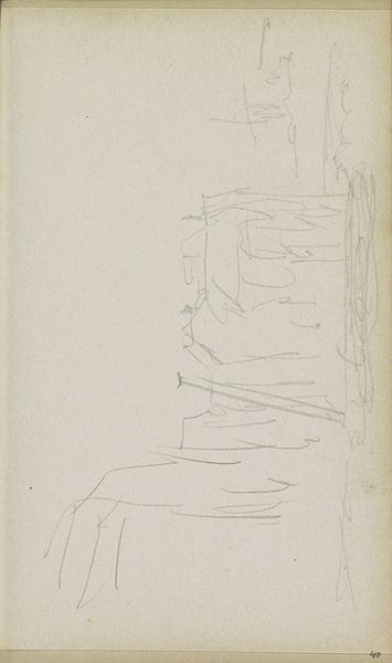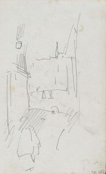 Adrianus Eversen made this drawing of buildings with pencil, and here we see the bare bones of architectural forms. Buildings, from antiquity to modernity, act as cultural symbols of power, permanence, and collective identity. The architectural rendering, even in its skeletal form, echoes the ancient impulse to leave a mark, to construct meaning from the ground up. Think of the Tower of Babel, or even the simple home, as a marker of civilization and humanity’s reaching for the divine. Consider the recurring motif of the "window" across art history. Windows are not merely architectural features; they symbolize perception, knowledge, and the boundary between inner and outer worlds. Recall the Renaissance paintings where light streams through windows, illuminating sacred scenes. Here, the absence of detail invites us to project our own experiences onto the image. This raw sketch leaves us contemplating the cyclical nature of creativity. It’s a primal act to construct and record. The emotional resonance of "Gezicht op gebouwen" lies in its testament to humanity’s relentless pursuit of structure and order in a transient world.
