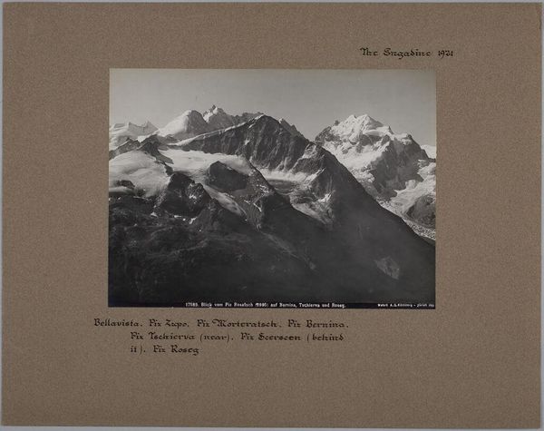 Editor: This is A. G. Wehrli's photograph, "Besteigung der Jungfrau VI, Blick vom obern Mönchsjoch auf die Jungfrau." It's a monochrome image of a mountain, and I'm immediately drawn to the stark contrast between the snow and rock. What stands out to you? Curator: For me, it's about the process. Think about the labour involved in creating this image. What materials did Wehrli use? How did the act of climbing and photographing influence the final product? The photograph becomes a record of a specific type of physical engagement with the landscape. Editor: That's a perspective I hadn't considered. So the photograph isn't just about the mountain itself? Curator: Exactly! It’s also about how that mountain was consumed and then re-presented through photographic means. The materials and labor of photography become part of the story. Editor: Fascinating! Now I'm thinking about the environmental impact of early photography in such a remote location. Curator: Precisely. Materiality extends beyond the artwork itself to encompass the broader context of its creation and reception.