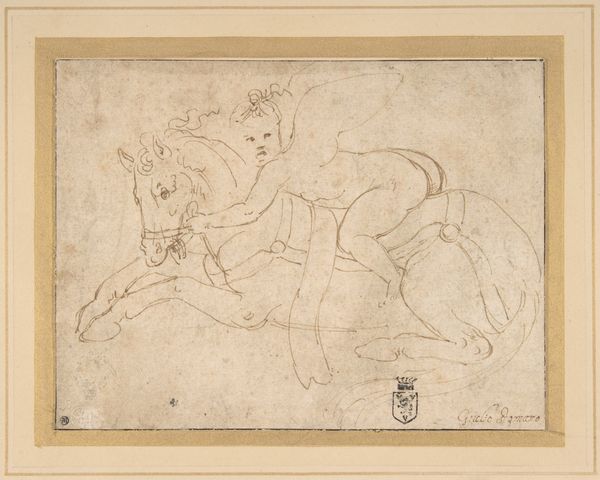 Curator: Here we have "Man with Ram," a drawing attributed to Aqa Riza, also known as Riza 'Abbasi. Editor: There's such an immediate sense of tenderness here. The man's touch seems so gentle, almost playful. Curator: Absolutely. Figures like these, rendered in ink on paper, were popular in 17th-century Persia and often found in albums. Editor: I wonder about the symbolism of the ram. Was it a sacrificial symbol, a symbol of power, or something else entirely within that cultural context? Curator: It's open to interpretation, but it certainly highlights the relationship between humans and animals in Safavid society, and how that’s viewed. Editor: It makes me think about the ways that animals, even now, are often depicted as subservient to humans. I wonder about the power dynamics at play. Curator: This piece offers a glimpse into the societal values, inviting us to consider these relationships across time. Editor: This work has prompted a lot of questions for me, it's quite thought-provoking.