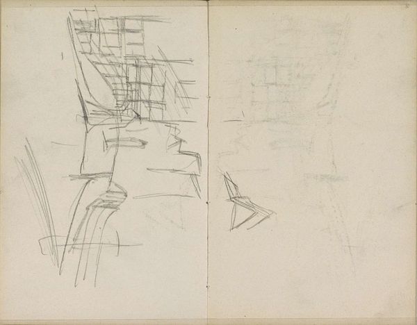 Curator: These are preliminary "Ontwerpen voor een stoel," or Designs for a Chair, from 1896, rendered in pencil on paper by Carel Adolph Lion Cachet. They reside here at the Rijksmuseum. Editor: I'm immediately struck by the ethereality of it. The lines are so light, almost hesitant. It feels like we're glimpsing a thought in progress rather than a finished product. Curator: Exactly! This sketchbook quality provides insight into the design process at the turn of the century. The artist, involved in the Dutch Arts and Crafts movement, used preliminary sketches like this one to envision furniture in line with his aesthetic ideals. These movements aimed to counter mass-produced goods. Editor: You can certainly see the influence of Art Nouveau in the flowing lines, even in a skeletal sketch such as this. The emphasis is on form and function, even in a nascent stage of design. I wonder, do you find the multiple viewpoints disorienting, or do they add to the dynamism? Curator: For me, it represents an intriguing conversation with evolving cultural values that embraced handmade goods over increasingly prevalent mechanization. It marks Cachet's contribution to Dutch visual arts. Editor: Well, to my eyes, the appeal is primarily structural; it's fascinating to see the basic shapes begin to coalesce into what is, at least conceptually, a chair. Curator: And isn’t that so fascinating to study the foundations of a chair in the context of art, a rather political and symbolic placement? Editor: Yes, a great insight to its historical and political undertones which gives a beautiful synthesis.