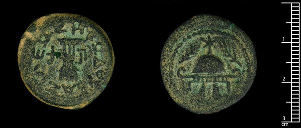 Curator: This is a coin of Neapolis under Philip I. It's part of the Harvard Art Museums collection and weighs about 13 grams. Editor: It feels ancient, you know? Like holding a tiny, worn-out world. The texture and patina just scream history. Curator: These coins were not just currency. They were instruments of power, symbols of empire circulated among the populace. Editor: I see a figure...carrying something? It almost looks like they're struggling, but with grace. There's a story here. Curator: The imagery would have been carefully chosen to convey specific messages about the emperor's authority and divine favor. Editor: It's amazing that something so small could hold so much weight, both literally and figuratively. It humbles me. Curator: Indeed, a tangible reminder of how power and art intertwine, even in the most unassuming of objects. Editor: Right, and I'm so glad to have felt that weight in my hand.