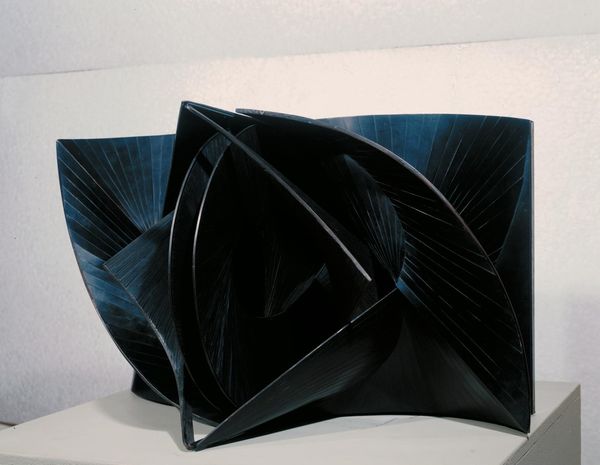 Curator: We’re looking at “Plastic ensemble,” a metal relief sculpture crafted by Giacomo Balla in 1915. Editor: Wow, it feels like the aftermath of an explosion. Fragments frozen in mid-air, all these sharp angles… it’s almost violent. Curator: Absolutely. Balla was a key figure in the Futurist movement, which fervently embraced modernity, speed, and the dynamism of the machine age. The formal arrangement reflects a broader fascination, prevalent amongst avant-garde Italian artists, with representing forces acting in space and a radical embrace of speed. Editor: I can see that! It's like he’s trying to capture movement in a static form. You get a sense of objects shattering and reforming simultaneously. But it’s more than just an ode to speed; it’s an entire aesthetic shift! Metal and abstract forms instead of traditional marble busts...it definitely has a militant aspect. Curator: Exactly. Futurism was intrinsically linked to the political climate of the time. Balla and his contemporaries saw war as a cleansing force, a catalyst for change. So this dynamic fracturing and angularity you perceive reflects that desire for radical social and aesthetic restructuring. It is a violent rejection of historical models that had outstayed their purpose. Editor: I get this impression of coldness. There's something inherently impersonal about geometric shapes cast in metal that gives it this unapproachable quality. And it's also pretty cool to see what were essentially industrial materials taking pride of place in a fine art gallery. Curator: That's a astute insight. The choice of materials and geometric abstraction weren't arbitrary, as the Futurists turned their backs on traditional artistic values and materials. By employing metal, Balla elevates the material culture of the factory into the aesthetic language of sculpture. It becomes a manifesto in metal! Editor: I am sensing that Balla must have wanted to break everything down to the basics, playing around with forms without caring about realistic details. It looks like Balla isn’t just trying to create art but also inventing a whole new visual language! Thanks for expanding my sense of it. Curator: It's a fascinating work that really makes us think about how art intersects with politics and technological advancement. Balla definitely wanted to alter people’s visual understanding with this manifesto, it is great to continue these reflections.