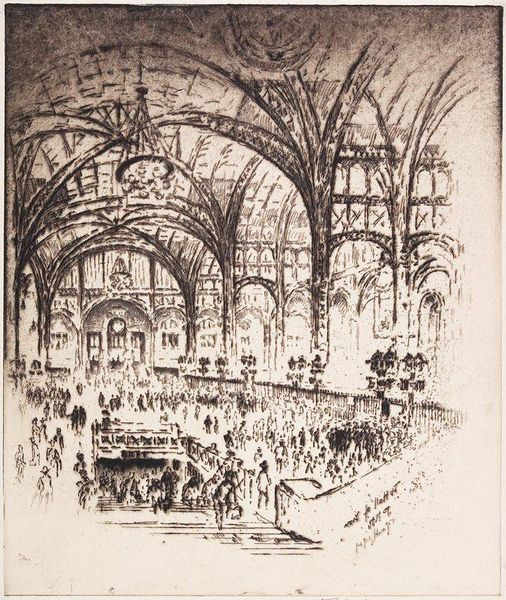 Curator: This is John Ruskin's "Study of Portal and Carved Pinnacles, Cathedral of St. Lô, Normandy." The artwork now resides at the Harvard Art Museums, inviting close study. Editor: My first impression? It feels like a dream fading at the edges, the stark lines battling against the soft, washed-out areas. Curator: Ruskin masterfully uses line and wash to emphasize the Gothic architecture. Notice how the strong vertical lines of the pinnacles contrast with the complex ornamentation surrounding the portal. Editor: Those pinnacles are fascinating, aren't they? They seem to reach for something beyond, laden with Christian symbolism, perhaps alluding to the ascent of the soul. Curator: Precisely, and Ruskin's handling of light and shadow creates depth and volume. The strategic use of negative space also enhances the overall composition, doesn't it? Editor: Yes, it does, the drawing captures the cathedral's grandeur and also hints at a deeper spiritual yearning, the kind embedded in our collective cultural memory. Curator: A brilliant distillation of form and feeling. Editor: Indeed, Ruskin makes us see not only the architectural elements but also the enduring power of faith translated into stone.