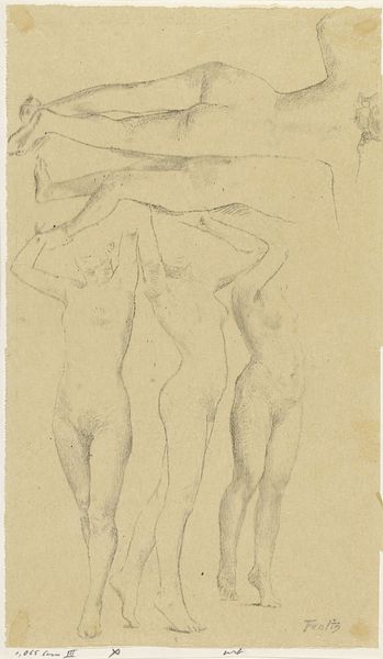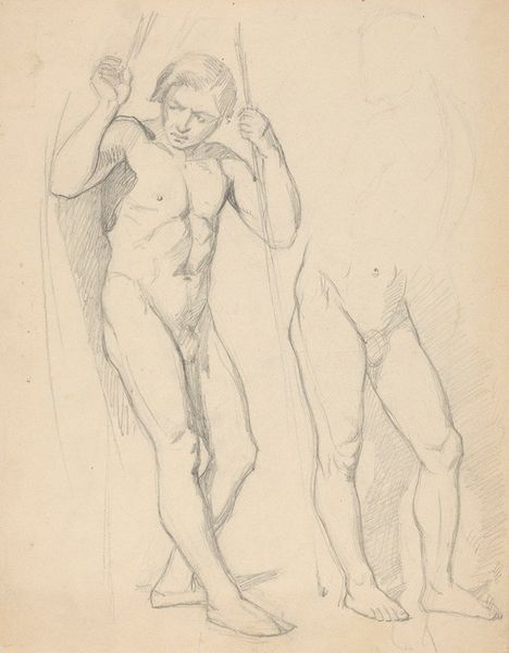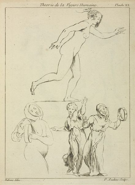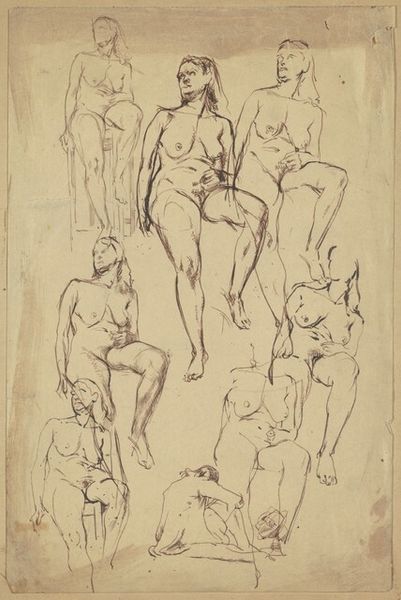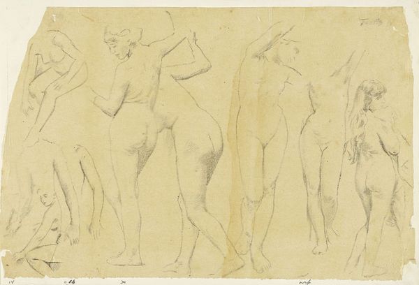Editor: Here we have Thomas Stothard's "Studies of a Woman Bathing". It's a delicate pencil sketch with several figures. What I find interesting is the repetitive nature of the poses and the visible process marks. What do you make of it? Curator: This work reflects the means of production of the era. It's not about idealised beauty, but about the artist's labor, the physical act of sketching. Consider the paper itself, the source of the graphite, the social context allowing leisure for such studies. How does this change your interpretation? Editor: It makes me think about access to materials and time as a form of privilege. Thank you, that gives me a lot to consider.