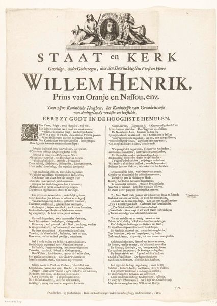 Editor: Here we have "Vers bij de spotprent met Theodorus Dominicus die op een kruiwagen de kerk in wordt gereden," from 1683-1684, an engraving currently held at the Rijksmuseum. What strikes me immediately is the overwhelming amount of text. It feels like a broadside, aiming to persuade rather than simply depict. How do you interpret this work, especially considering its historical context? Curator: You've correctly identified the persuasive nature of this piece. During the Dutch Golden Age, prints like these functioned as potent tools of public discourse. It's important to analyze this not just as art, but as a form of political commentary, wouldn't you agree? It's clearly a statement on religious tensions. Editor: Absolutely. The central image, though obscured by the text, seems to depict someone being wheeled into a church in a wheelbarrow. Is it meant to be satirical, portraying Theodorus Dominicus as somehow unfit or unwilling to enter the church normally? Curator: Precisely. Considering the religious and political climate of the time, it's crucial to ask, what was the controversy surrounding Theodorus Dominicus? And who was the intended audience of this print? Was it designed to reinforce existing biases or incite further opposition? The act of depicting this event in a readily available printed format served to amplify whatever message it carries, regardless of its source or accuracy. Editor: So, it's less about the artistry itself and more about its function as a form of visual and textual propaganda? Curator: Not necessarily less, but different! One medium’s propaganda is another’s form of social activism! Looking closer we can observe the use of language and typeface to gauge its effectiveness, which offers us today insight into their public roles back then and related politics. Editor: I hadn't considered that it’s medium-agnostic. I’m thinking differently now about how art and text create historical understanding! Curator: Exactly. That understanding shapes the ways history remembers them, too.
