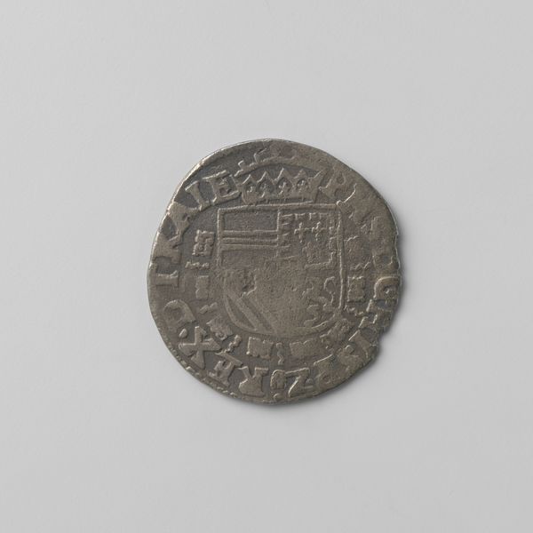 Editor: So, here we have an "Overijsselse bezemstuiver" from 1628, crafted from metal. It's a small coin, and there's something inherently aged and worn about it, almost like it has a history etched onto its surface. What do you see when you look at this coin? Curator: I see a tangible link to a specific time and place, but more than that, I see the imprints of power dynamics. Who controlled the mint? Whose faces or symbols were deemed worthy of circulation? Coinage is never neutral; it is a carefully curated expression of sovereignty. In 1628, who would have been using this coin, and what systems of exchange were they participating in? Editor: That’s a very different way of considering money. I tend to think of coins more in terms of trade. Curator: Precisely. Trade is key. But who benefited from that trade, and who was exploited? What social hierarchies were reinforced through these monetary transactions? Consider, for example, if we could analyze the chemical composition of this coin – could it tell us anything about the origins of the metal and potentially illuminate colonial extraction practices? Editor: That’s fascinating! I never thought about tracing a coin back to the literal ground it came from to unveil something about those historical structures. How much does the province of Overijssel at the time have to do with it? Curator: The province itself held complex power dynamics; localized governance wrestling with larger Dutch identities and colonial ambitions. The imagery and language employed on the coin is far more than simply local identifiers; it’s an active declaration of their positioning within that complicated web. Who controlled this imagery is a reflection of their position within that power dynamic. Editor: Wow, it is much more layered and complex than I first thought. I will never see an old coin the same way. Curator: Hopefully, you’ll see everyday objects through new critical lenses now. We should constantly be interrogating the stories these artifacts tell and, more importantly, the stories they conceal.