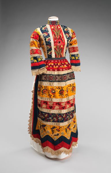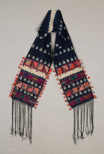 Curator: Let’s turn our attention to this "Hat" crafted circa the 20th century. It resides here at the Minneapolis Institute of Art. A fine example of fibre art. Editor: What strikes me immediately is the sheer exuberance of color and pattern. It’s festive, almost joyful. The layering of different geometric shapes gives it a very lively, almost musical rhythm. Curator: Indeed. Consider the materials, most probably wool. You're looking at hours of hand-embroidered, perhaps even woven, work. We must appreciate the labor embedded within each stitch, within each knot. This "Hat" transcends mere utility, challenging divisions between functional garment and art. Editor: I see it too, but this piece speaks of protection, of warmth. A potent symbol of home, heritage, and perhaps even community. Colors might echo specific tribal affiliations or carry individual meaning. The patterns almost seem like encoded narratives. Curator: Interesting, the textile design as visual narrative. It may give us a clue regarding gendered labor. Who created this? Where did it take place? What economic exchanges made its existence possible? The material answers questions about social context and process, you see. Editor: And it perhaps invites another question. Why those colors, those patterns, repeated over generations? What collective memories do they evoke for its maker or wearer? This seemingly simple hat might, in effect, be an article saturated with cultural information, passed down and made manifest. Curator: Excellent point, because it speaks volumes about textile design, layered pattern and abstraction. So we arrive back at that division. It's "Hat", and its artistry comes in the hand of those who made it, by the conditions it comes from. This piece becomes invaluable beyond its utilitarian purpose. Editor: The symbolism within this "Hat" might also invite us to imagine what someone felt or remembered while wearing it. Thanks to this, now it becomes timeless. Curator: Fascinating. Editor: Quite so.