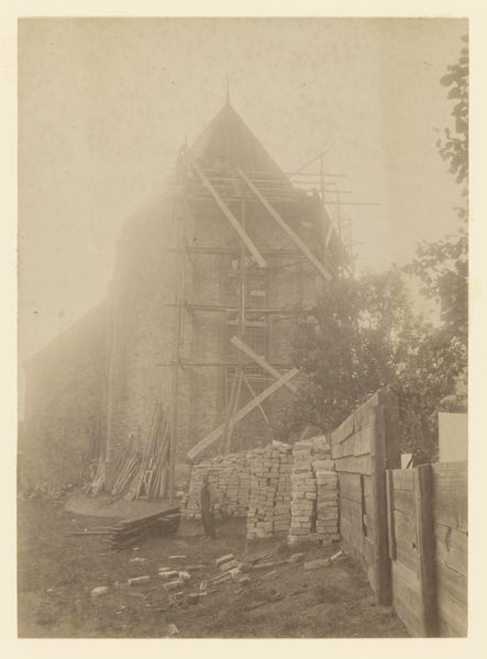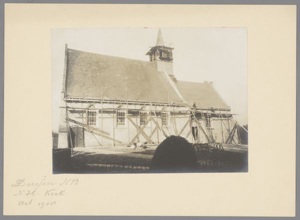 This photograph captures the Reformed Church in Dussen, its facade partially obscured by scaffolding, evidence of labor. The church, with its spire reaching towards the heavens, is a potent symbol. It echoes ancient desires to connect with the divine, seen in ziggurats and pyramids across cultures. Notice how the builders, suspended between earth and spire, recall the figures ascending Jacob's Ladder. This ladder, a conduit between the earthly and celestial realms, appears in myriad forms throughout art history—from medieval depictions of the soul's ascent to modern allegories of spiritual striving. The scaffolding itself is a temporary structure that reminds us of the constant construction, destruction, and reconstruction that forms our collective memory. The act of building, whether physical or spiritual, is a fundamental human impulse, a testament to our enduring quest for meaning. This photograph invites reflection on the cyclical nature of belief and the symbols that persist, transforming yet retaining their emotional core, across time.