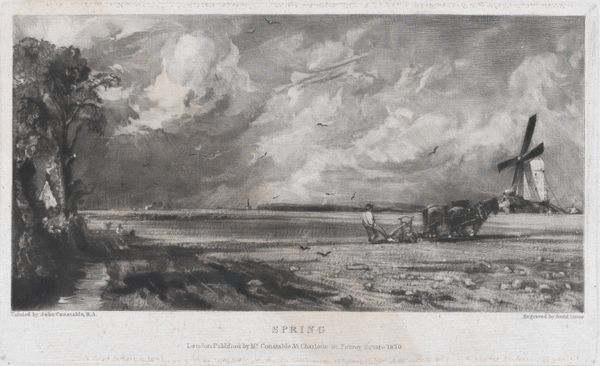 Editor: So this is "Yarmouth, Norfolk," an etching by David Lucas from 1832. It gives me this feeling of dramatic weather and industry sort of coexisting. How do you interpret this work? Curator: Well, immediately I think about the sociopolitical landscape of 1830s England. Consider the Reform Act and its discontents—shifts in power, anxieties about industrialization, a growing middle class grappling with identity. Do you see that pier extending into the sea, the boats suggesting trade and connection but also, potentially, exploitation? Editor: I do, now that you point it out. It’s easy to get caught up in the romantic landscape aspect. Curator: Precisely! It’s essential to remember that Romanticism, while celebrating nature, often served as a commentary on the human condition *within* rapidly changing social structures. Think about class divides, colonial ventures fueled by these very ships—were those gains shared, or concentrated in few hands? Notice the details. Who benefits from this bustling scene, and whose labor is being rendered invisible? Editor: So you’re saying the beauty might be a mask for more complex issues? Curator: It’s not always a deliberate "mask," but art rarely exists in a vacuum. Exploring those connections – to the economy, to social hierarchies, and to the lived experiences of the working class at the time—adds crucial layers of meaning. This wasn’t simply a picturesque view; it reflected a specific moment of social and economic transition. Editor: I never really thought of landscapes in this way, like visual documents of history. Thanks, I'm definitely looking at this in a whole new light. Curator: It goes to show, the value of an artwork lies as much in its silences as in what is seen.