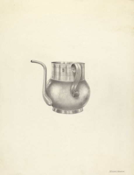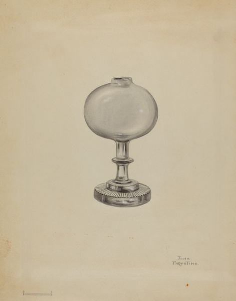 John Tarantino made this drawing of a miniature bellows bottle, we don’t know exactly when. The marks have a delicate touch, like he’s coaxing the form out of the page. It’s like he’s feeling his way around the object, figuring out how to make it appear. Look closely and you can see where the graphite is darker, where he’s built up the shadows to give the bottle its volume. Then there are the lighter areas, almost shimmering, suggesting the glass catching the light. See the way the lines aren’t perfectly clean, they waver a little, giving the object a sense of being alive, breathing. I keep thinking about the phrase ‘bellows bottle’ – it sounds like the name of a character in a fairy tale! This piece reminds me of Vija Celmins’ drawings, the way she renders everyday objects with such care and attention, elevating them to something monumental. Art's always in conversation, right? Always looking back, always finding new ways to see. And that’s the thing about art, it’s not about answers, it’s about questions.