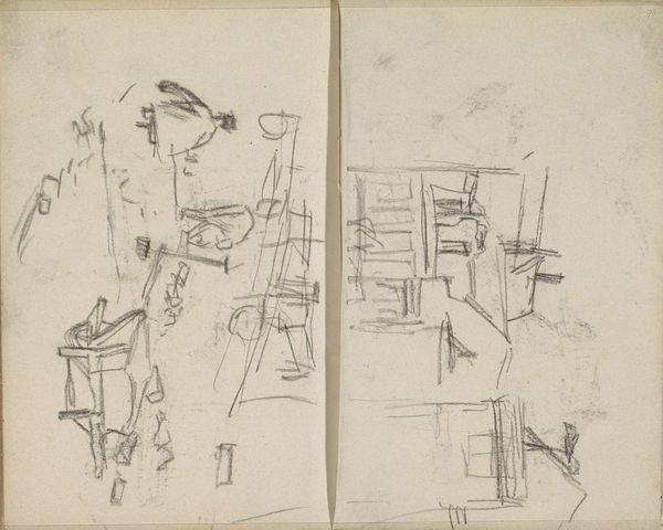 Curator: Here we have George Hendrik Breitner's graphite drawing, dating somewhere between 1892 and 1923, titled "Gezicht op de Oudezijds Kolk te Amsterdam" — a view of the Oudezijds Kolk in Amsterdam. Editor: My first thought? It feels…fragile. Like a memory sketched on the back of an envelope. The hurried lines give it this raw, ephemeral quality. It is currently in the Rijksmuseum. Curator: Exactly! Breitner was all about capturing fleeting moments, the gritty realities of urban life. You see that frenetic energy, that sense of movement in his brushstrokes elsewhere—well, here it’s distilled to the barest essentials in graphite. This wasn’t intended as a polished piece, but more as a… visual note. Editor: And the location itself, the Oudezijds Kolk, near the Red Light District. It’s not just a pretty cityscape. It speaks to a particular time and place, a burgeoning, sometimes seedy Amsterdam at the turn of the century. Think about who occupied those buildings, the social fabric woven into the canals and bridges. Curator: It is like he's chasing something, or perhaps something is chasing him. Maybe a memory that he can't quite grasp but desperately wants to keep. A sense of being haunted, not in a scary way, but in a profoundly human way. Editor: Absolutely. And that incomplete quality emphasizes how history itself is constructed, always filtered through individual perspectives and subject to erasure. The drawing begs us to fill in the gaps, to imagine the sounds and stories of that era. Breitner shows what *could* have been or *could* become, rather than a hard statement. Curator: It is in the essence of Breitner, I would suggest. He found beauty in what others ignored or considered uninteresting, a pursuit in the unkempt! It feels intensely alive because of that, not despite it. Editor: For me, that raw, unfinished feeling invites critical engagement with themes of urban development, labor, and social class in a rapidly changing city. There are histories hidden in plain sight. Curator: I feel this evokes such a human moment and reminds us that art, in its rawest form, is ultimately a mirror reflecting both the world and ourselves. Editor: Indeed, reminding us of the unseen faces that animated these sketches and invite reflection on how their lives, perhaps, mirrored the stark sketch lines captured here.