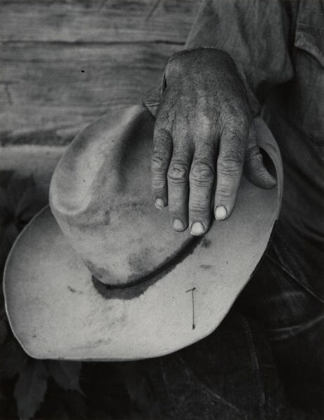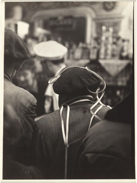 Robert Frank’s gelatin silver print captures a seemingly candid moment in New York. Frank, a Swiss immigrant, embarked on a cross-country road trip in the mid-1950s, funded by a Guggenheim Fellowship, to document American society. In this photograph, a man's hand holds up multiple chains, possibly medals or religious tokens. Beside him stands a man in what looks like military uniform. The blurred background gives a sense of a bustling crowd, perhaps suggesting an event or gathering. It's a fleeting, ambiguous image, reflecting Frank's interest in capturing the pulse of America. Frank's work often explores themes of alienation and social tension. "Medals/New York" encapsulates these themes by showing an unidealized view of American life, hinting at both its promises and its contradictions. The photograph leaves us to reflect on themes of value, belief, and the individual's place within a larger societal framework.