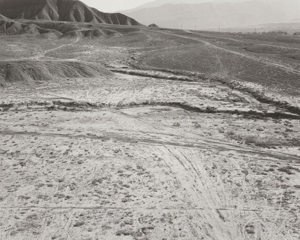 Lewis Baltz made "Park City 56" with photography, capturing a moment in time. Baltz seems to be composing in shades of gray, a tonal landscape, with a muted palette. It reminds me that art-making is always a process of selection and framing. There's such a bleak, tactile quality to this image. The grainy texture of the earth is palpable, giving this landscape a voice. I find myself drawn to the tire tracks in the foreground, they cut through the earth, disrupting its surface and creating these insistent lines that lead the eye toward the hills. Those lines mirroring the harsher, man-made lines of the wires strung above. This gesture, this mark, speaks to a larger narrative of human intervention on the land. Baltz's approach reminds me a little of Ed Ruscha. Both artists share a fascination with the vernacular landscape, finding beauty and significance in the mundane and overlooked. And, as with Ruscha, there's a sense of cool detachment. It's a reminder that art doesn't always have to be pretty or comfortable. It can be challenging, provocative, and open to multiple readings.