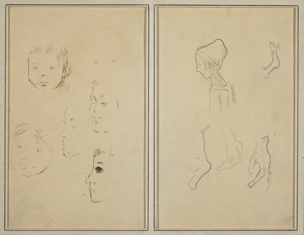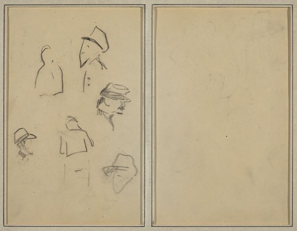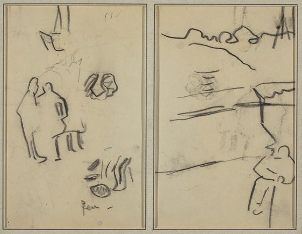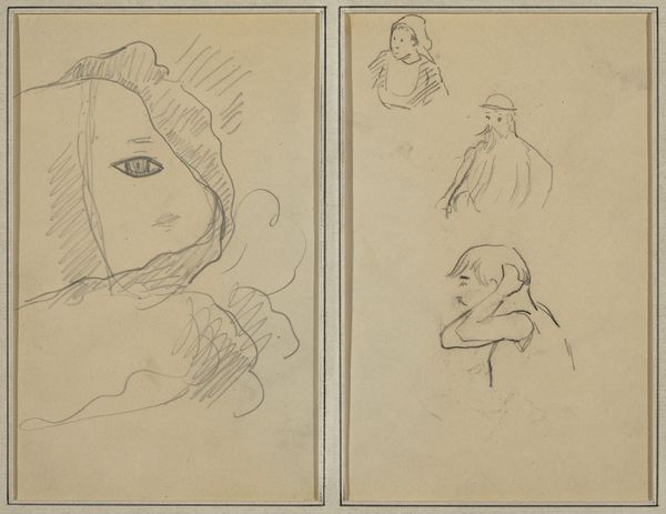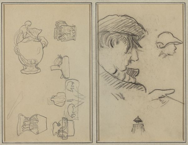 Editor: This is "Man Playing Piano; Two Sheep," a pencil drawing by Paul Gauguin from around 1884 to 1888. It’s interesting, almost like two separate thoughts captured on one page. What strikes you when you look at this? Curator: What I find captivating is the duality. The man playing piano evokes culture, perhaps the leisure of bourgeois life, a common Impressionist theme. Yet, on the verso, we see sheep, animals associated with simpler, rural existences. Editor: That contrast is compelling. It's like two worlds existing side-by-side. Curator: Exactly. The sheep in art can symbolize innocence, passivity, a connection to the land. Placing these images together, Gauguin might be hinting at a tension, a yearning, or perhaps the fragmented nature of modern identity. Does the pianist feel a longing for the pastoral idyll represented by the sheep? Or is it a commentary on the constraints of polite society, reflected in the structured act of playing the piano? Editor: That makes me see it differently. Maybe he's contrasting the artificiality of city life with something more natural and authentic? Curator: Precisely. Gauguin's later move to Tahiti suggests his own search for authenticity. This early drawing might contain the seeds of that later artistic quest. Notice how the simple, almost childlike depiction of the sheep contrast with the more developed lines defining the man. Is there a visual hierarchy, a prioritization of one subject over another? Editor: It's funny, at first glance it just seemed like two unrelated sketches, but now it feels loaded with meaning! Curator: Art often hides its depth beneath a simple surface. These images speak to the power of juxtaposition and the lasting echoes of our cultural past.