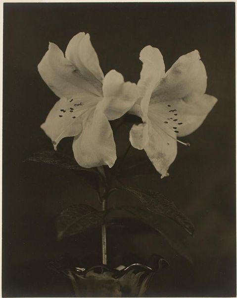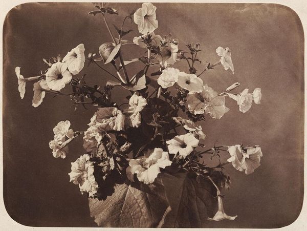 Editor: So here we have Sarah Choate Sears's "Untitled (cyclamen, outdoors)," a black and white photograph. It feels wonderfully intimate, almost like we're peeking into a secret garden. What captures your attention in this image? Curator: For me, it's the dance between detail and blur. Sears coaxes an almost painterly softness from photography. Notice how the foreground is sharp, those star-like cyclamen just bursting with clarity. Editor: Yes, and then the background sort of melts away. Curator: Exactly! It's as if Sears is inviting us to focus, to truly see the fleeting beauty of a single moment. It’s not just a photograph; it’s a feeling, a whisper of nature’s quiet magic. Makes you want to pause, doesn't it? Editor: Absolutely. I’ll definitely look at photography with new eyes. Curator: Me too! And that’s the best thing about art, isn’t it? It teaches us how to see.