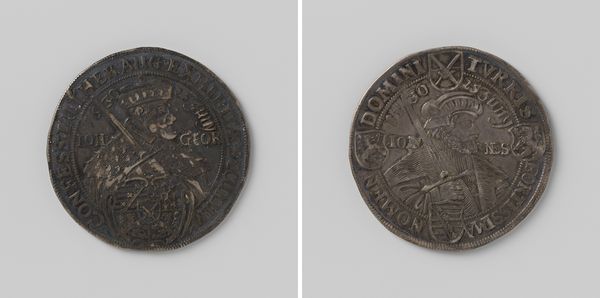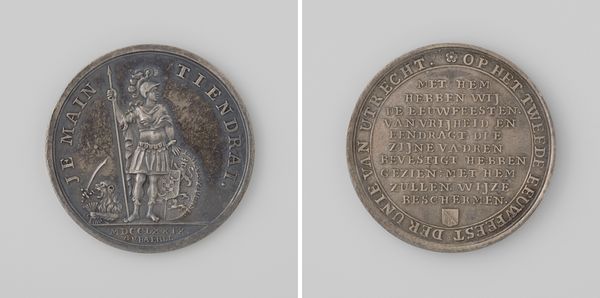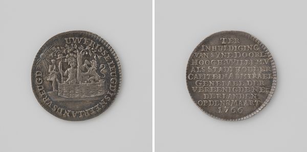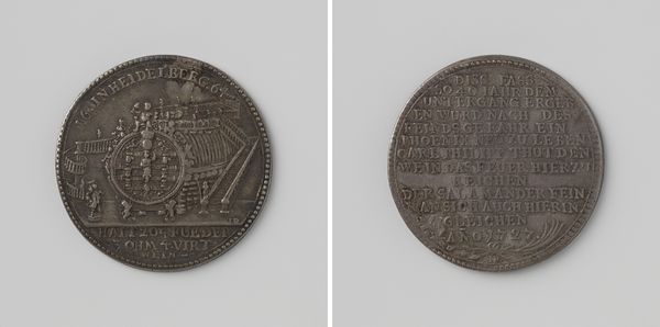 Editor: This is an engraving, titled *Verbranding van Johannes Hus*, or *The Burning of Jan Hus*, created around 1690 by Christoph Jakob Leherr. The miniature scale really emphasizes the immensity of the events it portrays; what strikes you most about its composition? Curator: For me, it's the stark contrast between the portrait of Hus on one side, seemingly calm and composed, and the graphic depiction of his execution on the reverse. Consider how these two images, when combined on a single object, comment on power dynamics and the creation of martyrs. The medal reframes the legacy of Hus a century and a half later, transforming a condemned heretic into a symbol of religious conviction. What's the effect of pairing text with the image? Editor: I think it gives a sense of authority to the engraving. The text is integrated in both faces of the medal, and they provide concise information and context for understanding the portrayed scenes and meaning. What else can you tell me? Curator: I find it fascinating how the production of such medals, particularly in the context of the late 17th century, speaks to the politicization of historical figures like Hus. Remember that such engravings aren't simply neutral records; they are interventions in ongoing debates about religious authority and historical memory. To whom were these medals aimed, and what arguments were they meant to support? Editor: That makes me see how much an object like this carries beyond the aesthetic, acting as a statement and part of a larger conversation about history and power. Curator: Precisely. Studying how historical figures are represented, reinterpreted, and deployed in art reveals much about a society’s own anxieties and aspirations.